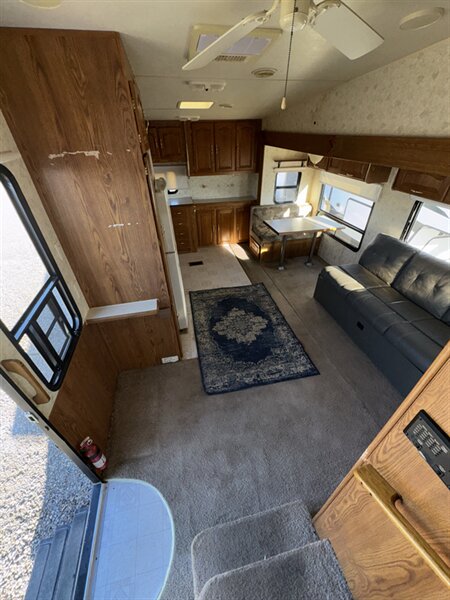 The 2001 Sierra 27RKSS Fifth Wheel combines comfort, durability, and easy towing into one reliable package. Weighing just 7,275 lbs, it’s a manageable size for most three-quarter-ton trucks while still offering a roomy interior layout.