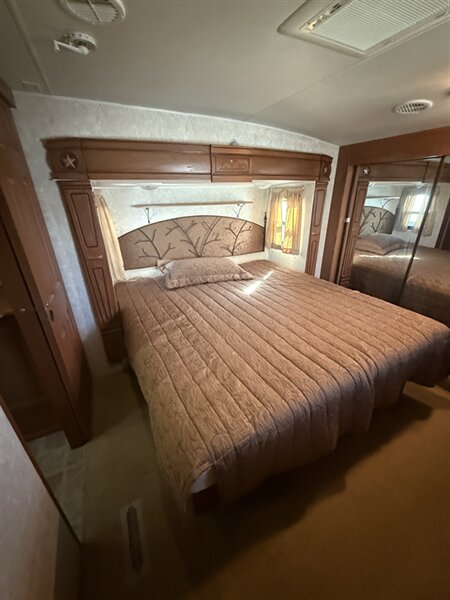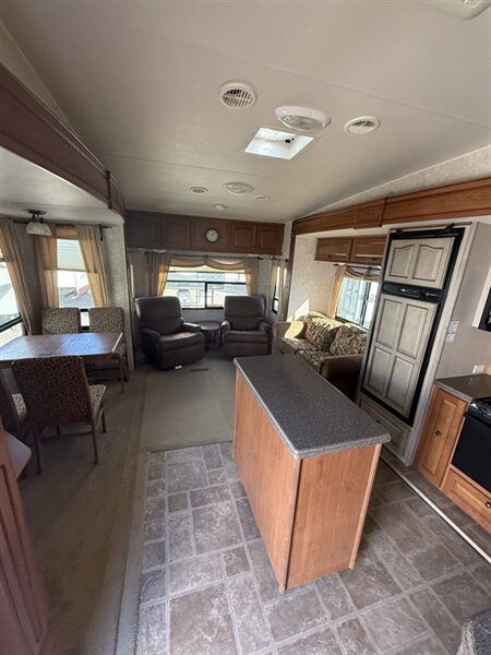 The 2011 Open Range 345RLS is a high-quality fifth wheel designed for extended travel and all-season comfort. With a dry weight of 9,865 pounds, this model offers a strong combination of residential comfort and towing stability. Its Four Seasons construction includes insulated walls, enclosed and heated underbelly, and thermal pane windows, allowing dependable use in both hot and cold conditions.