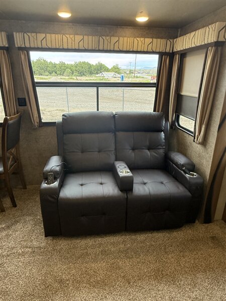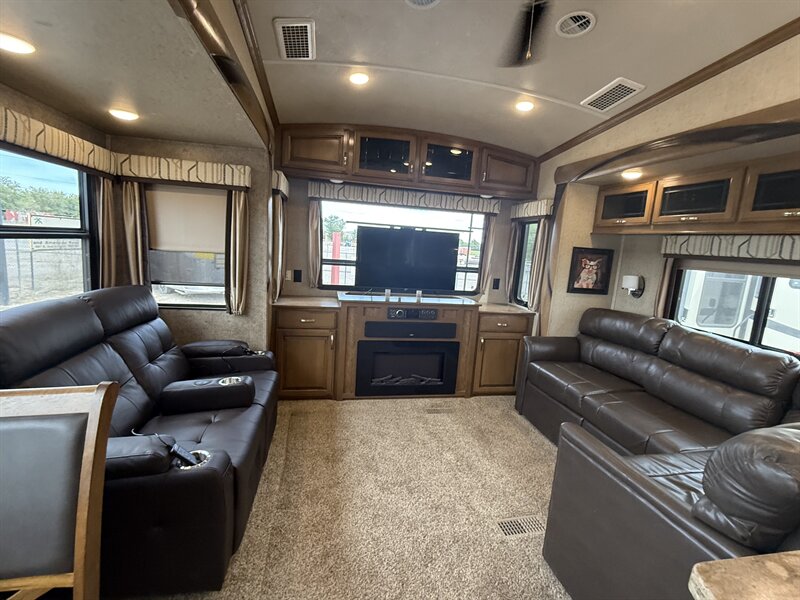 Experience luxury and comfort with the 2017 Cedar Creek Hathaway Edition 34RE—your all-season, adventure-ready fifth wheel. Spanning 37 feet, this model is equipped with an Onan 5500 generator showing just 51 hours, delivering dependable power for road trips and off-grid explorations. Enjoy true tranquility thanks to dual whisper-quiet air conditioners, as well as both gas and electric heat options for superior climate control.