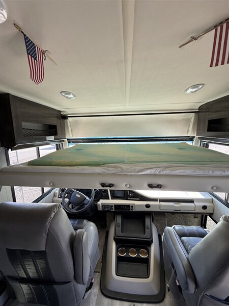 Discover the freedom to roam in this 2021 Fleetwood Flair 29M, meticulously maintained with just 8,957 miles. This coach rides on a robust Ford 7.3L V8 chassis and comes equipped with a powerful 5,500-watt Onan generator showing only 75 hours. Stay cool and comfortable wherever you travel thanks to dual ducted air conditioners, while the power driver’s seat and advanced rear and sideview camera systems make every mile stress-free. The full-wall slide opens up a spacious interior with a jackknife sofa for relaxation and extra sleeping capacity, plus a convertible booth dinette and a Hide-A-Loft drop-down queen bed above the cab, giving you flexible room for family and guests.