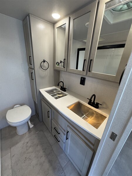 Experience luxury and versatility with this like-new, one-owner, garage-kept 2022 Columbus 329DVC fifth wheel—a standout choice for anyone seeking comfort and reliability on the road. This spacious 37 ft 6 in RV sits on a robust aluminum frame and weighs in at 11,450 lbs, offering tremendous stability and durability. The interior features a wide-open modern floorplan, highlighted by three slide-outs that create an expansive living area, perfect for relaxing or entertaining.