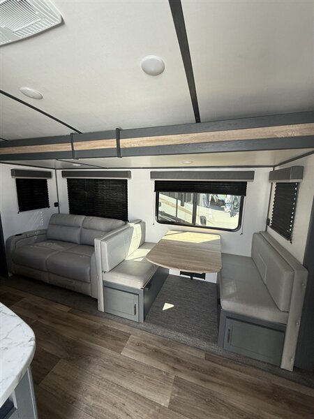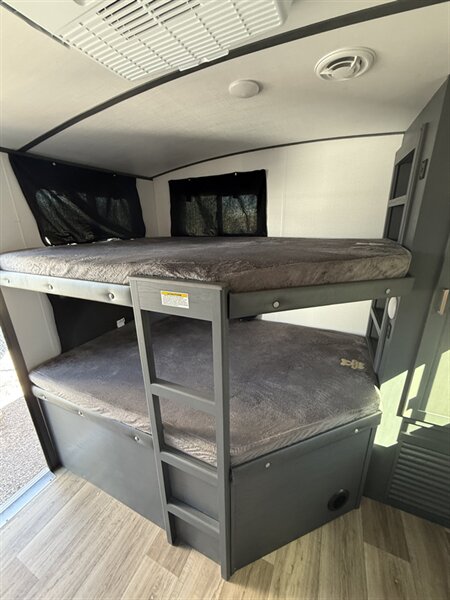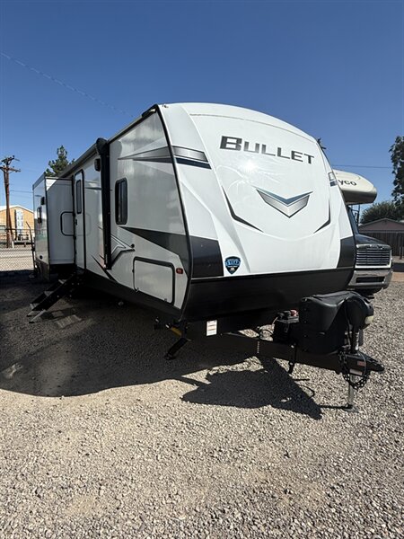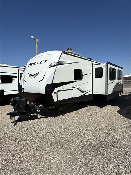This like-new 2023 Keystone Bullet 330BHS is the ultimate combination of comfort, efficiency, and family adventure. Weighing only 7,930 lbs, this half-ton towable bunkhouse offers high-end construction, a functional floorplan, and modern amenities that make every trip feel first-class.