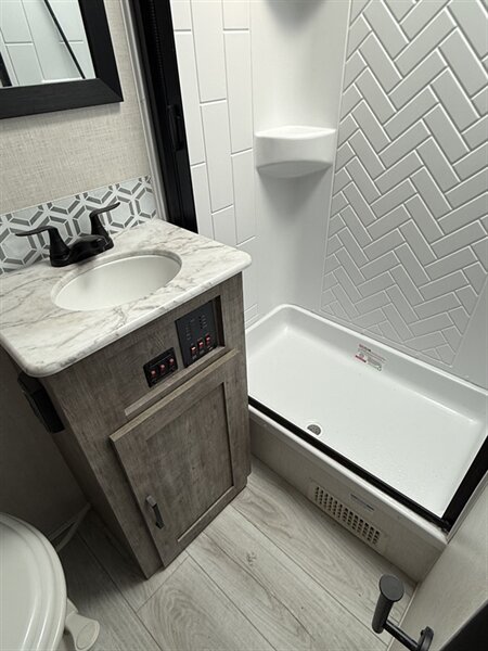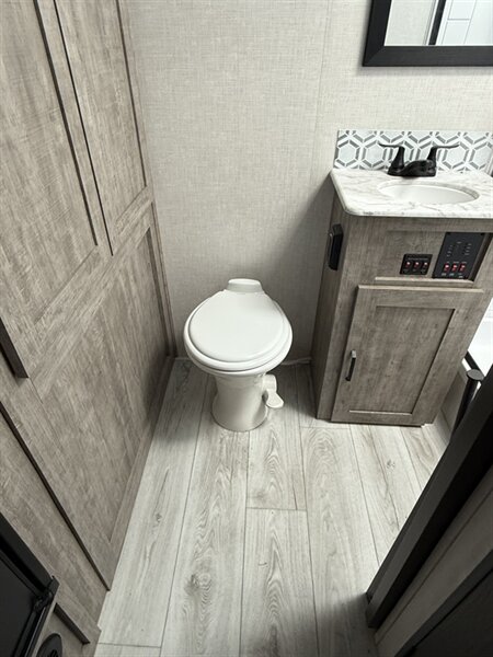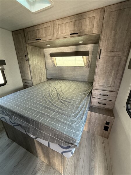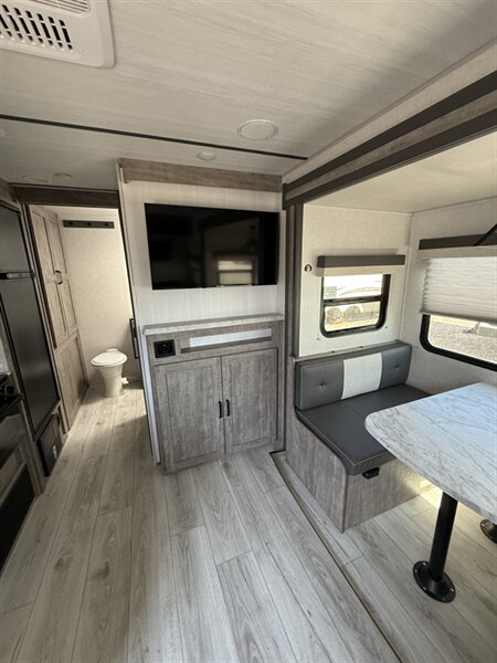 This model features a solar panel and charger to keep you powered anywhere, along with a convenient central vacuum system for easy cleanup after busy days. Inside, the open layout welcomes you with a tri-fold sofa, booth dinette, and a full rear bath with a linen closet and skylight for extra comfort. With thoughtful amenities like a walk-in pantry, queen bed, oversized dinette storage, tankless hot water, and a carpet-free interior, the Surveyor 252RBLE delivers stress-free camping with style and functionality for families or couples on the go.