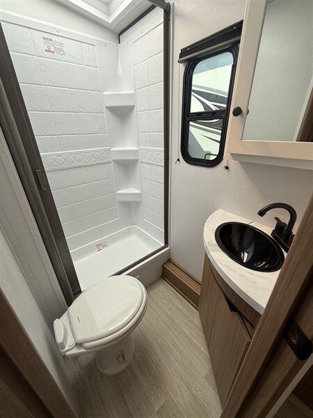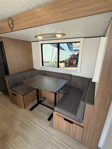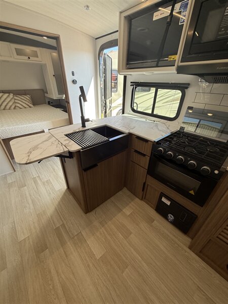 The 229BH is also designed with all-season capability in mind, offering a heated and enclosed underbelly, Goodyear tires, and torsion axles for smoother towing in every condition. Plus, a 220-watt solar package with lithium battery, 15K BTU air conditioner, and on-demand water heater ensure you stay powered, cool, and comfortable no matter where the journey takes you.