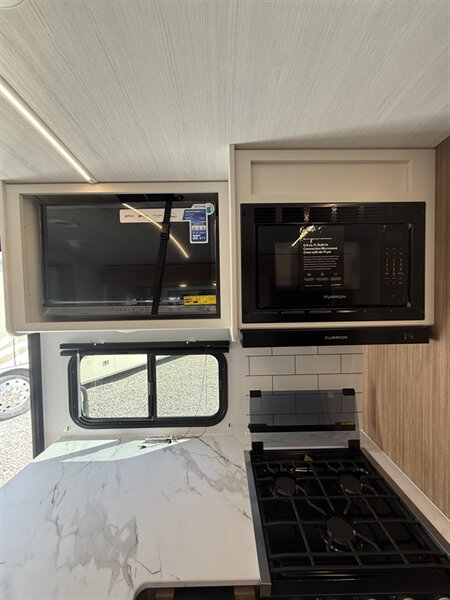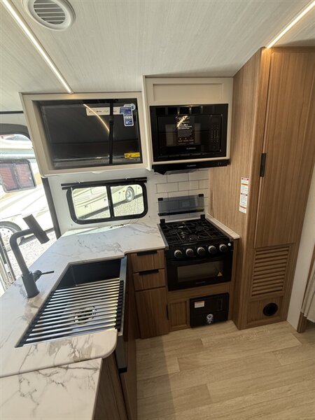 Outdoor living is just as easy thanks to a full outside kitchen, 19’ power awning with LED lighting, aluminum wheels, and a rear cargo door. Setup is a breeze with power stabilizer jacks, a power tongue jack, and smart features like Bluetooth audio, Wi-Fi prep, KeyTV system, and more—keeping your family connected and entertained wherever you roam.